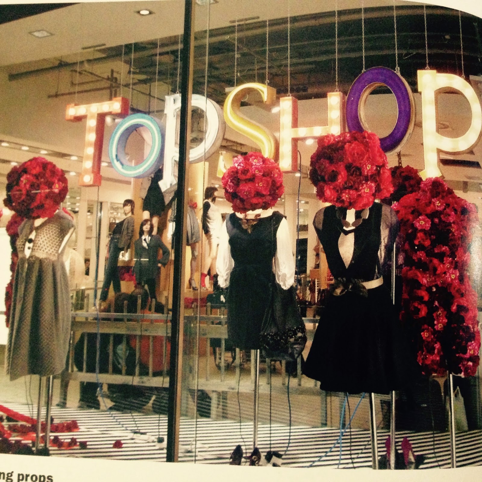 The heads of these mannequins have been replaced with silk flowers for Topshop's Spring/Summer window display and give a fresh connotation. Personally,it makes me think that they will be selling floral garments in the store, or clothes with a summery design.